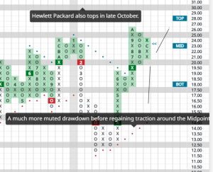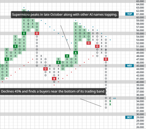 Instead, let it pull back into the low $30’s after this first bounce, then decide if/how you want to set a stop. A low-risk stop would be set just below the most recent column of O’s, with a print of $31.